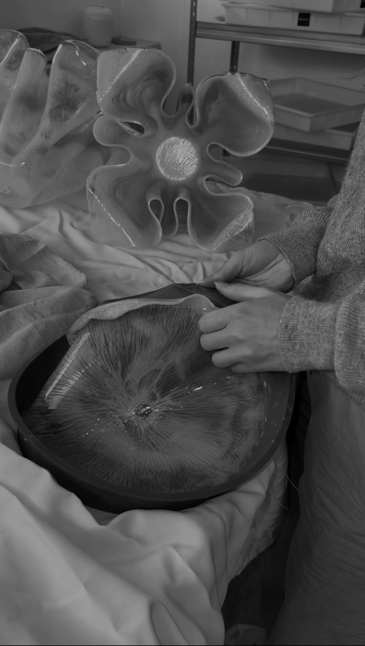 "Det var ikke en let vej at komme frem til det første design. Vi skulle igennem 30+ prototyper, før vi mestrede hærdningstiden, farven og formerne på hver enkel. Alle kunstværkerne bliver kreeret i hånden, og derfor kan vi aldrig være helt sikre på, hvordan de ser ud til sidst. Men det er også hele pointen."